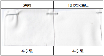 1、处理后的面料,抗酚醛黄变可达到4-5级,防水效果达到4-5级;