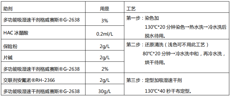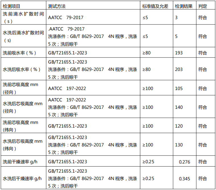 此方案是依据客户要求,开发100%涤纶梭织黑色布的吸湿速干功能。分别参考标准AATCC 79-2017、AATCC 197-2022、GB/T21655.1-2023三个标准,提升面料的洗前与洗后滴水扩散时间、吸水率、芯吸高度、干燥速率性能。通过筛选开发,我们为客户特制定此方案,供有相似需求的面料品牌企业参考。