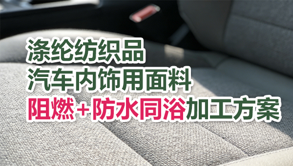 涤纶汽车装饰用面料,阻燃+防水同浴整理方案