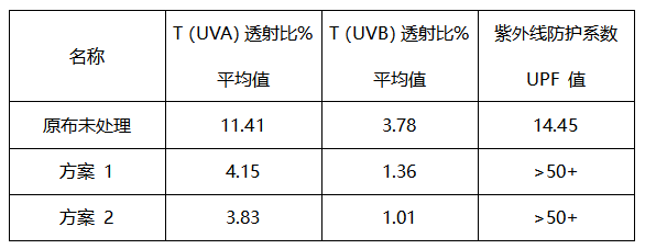 方案 2 抗紫外线 G-3302 整理剂处理后花能做到 UPF50+