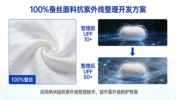 超轻超薄面料因其特殊的轻薄结构,在染整加工中难度较大,各种功能指标不太容易做到理想要求。通过研发筛选特殊产品与工艺,我们开发出超轻薄面料(克重80)的抗紫外线整理方案,其他功能性整理亦适用。